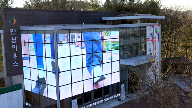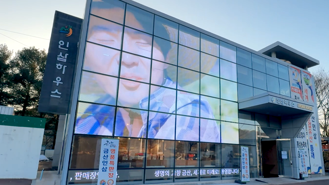 외벽을 대형 스크린 삼아 운영하는 홍보판에선 금산의 주요 관광지와 인삼·깻잎 등 특산품 홍보 영상, 금산인삼 CF를 접할 수 있습니다.