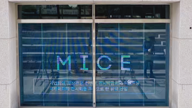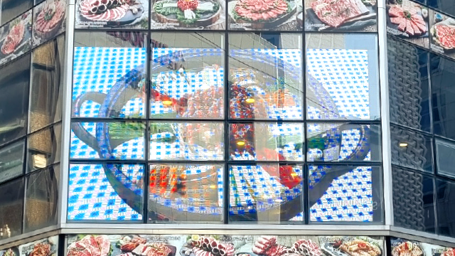 건물 유리창 내부에 투명 LED 필름을 부착, 외벽을 대형 스크린 삼아