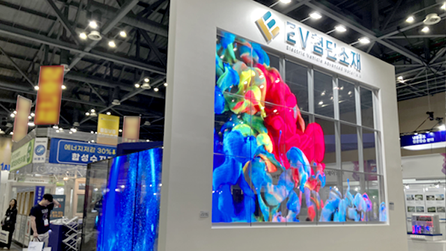 이번 전시회에서 가볍고 얇은 투명 LED 필름의 특성과